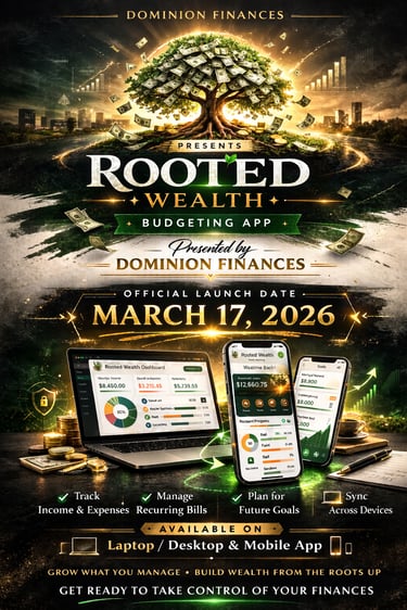 At Dominion Finances, we specialize in financial planning and budget coaching, helping you build wealth one budget at a time.